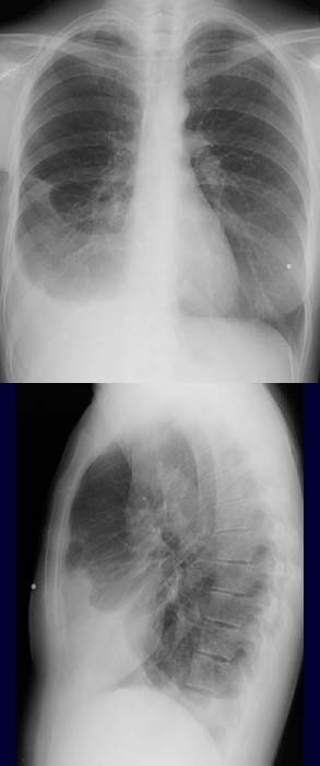 stretches in the interlobar fissure. Patient has had a right mastectomy -
